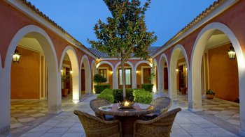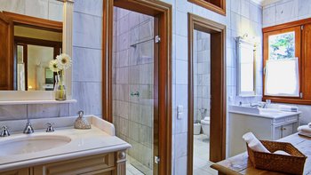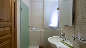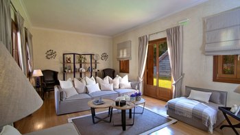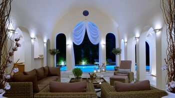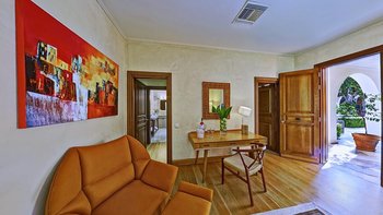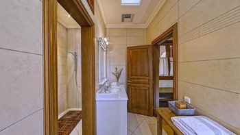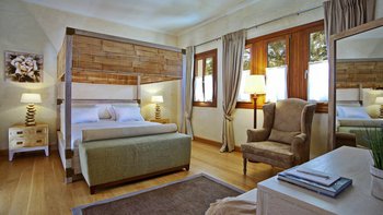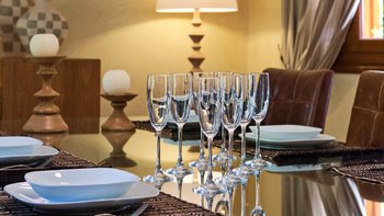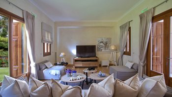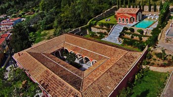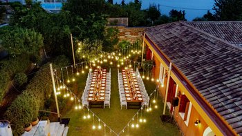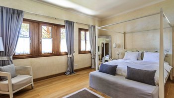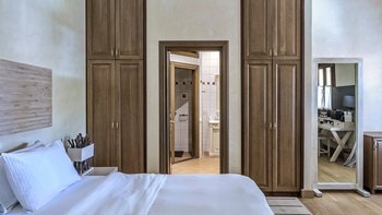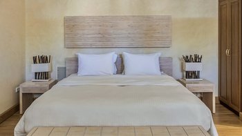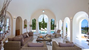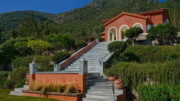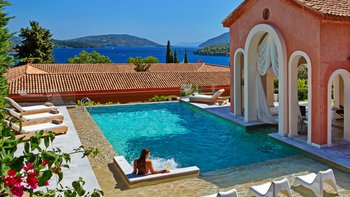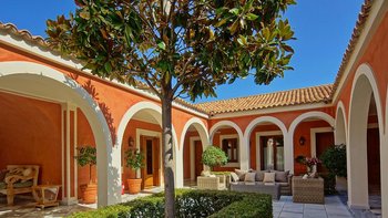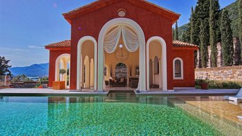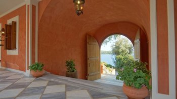 Die Villa Venecia ist im traditionellen venezianischen Stil gehalten und ist sofort an ihrer kräftigen Farbpalette erkennbar, die hauptsächlich aus rötlichen und orangen Farbtönen besteht, die einen wunderschönen Kontrast zu den grünen Hügeln und dem azurblauen Wasser bilden, die das Anwesen umgeben und sich über ganz Lefkada erstrecken. Im Inneren wurde jedes der fünf Schlafzimmer mit eigenem Bad so gestaltet, dass auf Komfort geachtet wird und nur hochwertige Bettwäsche, Bettwäsche und Toilettenartikel ausgestattet sind. Diese Schlafzimmer liegen alle um den Innenhof, was die einzigartigen Grundrisse der Villa prägt. Der Erdgeschoss verfügt auch über ein großes Wohnzimmer, ein geräumiges Esszimmer und eine voll ausgestattete Küche für alle Ihre hausgemachten kulinarischen Bedürfnisse.