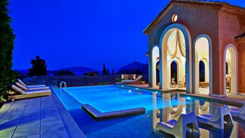 Eingebettet auf einem Hügel mit Blick auf das weitläufige Ionische Meer, ist die Villa Venecia ein außergewöhnlich auffälliges, luxuriöses Anwesen mit fünf Schlafzimmern im Herzen von Lefkada, Griechenland.