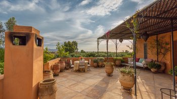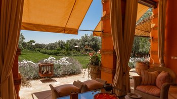 Diese exquisite, mit Personal ausgestattete Luxusvilla befindet sich auf einem exklusiven Privatgrundstück in einem weitläufigen Panoramagarten in der Nähe sowohl des Atlasgebirges und auch des lebhaften Marrakeschs.