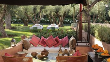 Diese außergewöhnliche Villa befindet sich in einer von Bäumen und Laternen gesäumten Gartenanlage in der üppigen Palmeraie, etwas außerhalb der antiken Stadt Marrakesch. Dessen unverwechselbar von einem führenden lokalen Architekten entworfenes Haus ist eine beeindruckende Mischung aus traditionellem Handwerk und modernen Trends. Es verfügt über maßgefertigte Möbel, aufwendige Tadelakt-Putzarbeiten und im Esszimmer über eine riesige Deckenlampe, die in einem lokalen Souk zu finden ist und nun von einer speziell dafür angefertigten Kuppeldecke umrahmt wird. Dessen sehr stilvolle Wohnzimmer verfügt über Klimaanlage und Fußbodenheizung für ganzjährigen Komfort, einen offenen Kamin und Steinwände verleihen Charakter.