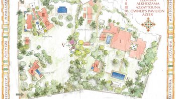 Für größere Gruppen kann Alkhozama zusammen mit einer oder beiden Schwestervillen Ezzahra und Azzaytouna undebenfalls von CV Villas angeboten) und dem Eigentümerpavillon mit einem Schlafzimmer gebucht werden, um bis zu 10 oder 26 Gäste unterzubringen.