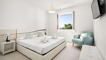 Die Villa Alba verfügt über vier gut ausgestattete Schlafzimmer, die sowohl Komfort und auch Privatsphäre bieten. Im Erdgeschoss befindet sich ein Schlafzimmer mit Doppelbett und eigenem Bad mit Dusche. Ein paar Stufen führen zu drei weiteren Schlafzimmern: zwei Zweibettzimmern, die sich ein modernes Familien-Duschbad teilen, und eine geräumige Master-Suite mit einem Kingsize-Bett und eigenem Bad. Jedes Zimmer ist durchdacht eingerichtet, um erholsame Nächte nach einem erlebnisreichen oder entspannenden Tag am Meer zu gewährleisten.