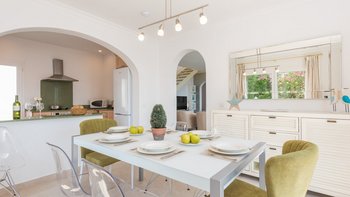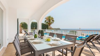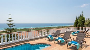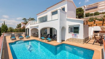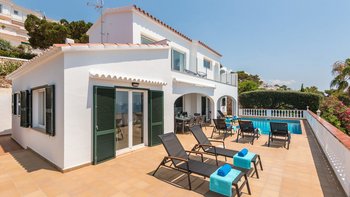 Kürzlich renoviert und ein perfekter Ort für einen Familienurlaub, diese wunderschöne Villa auf Menorca mit Panoramablick auf das Meer ist nur 1 km vom Sandstrand von Son Bou und diversen Annehmlichkeiten entfernt.
