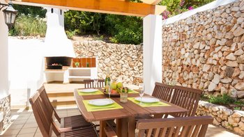 Diese kürzlich renovierte zweistöckige Villa bietet entspannten und unprätentiösen Komfort und befindet sich in beneidenswerter Lage, nur 1 km vom Sandstrand von Son Bou und dem Einkaufszentrum entfernt, mit einer großen Auswahl an Geschäften und Restaurants sowie Bussen nach Alaoir oder Mahón. Des Anwesen verfügt über eine wunderschöne Terrasse mit privatem Swimmingpool, ideal für einen Sundowner und einen der besten Panoramablicke auf die Balearen. Zu den Einrichtungen für das Leben im Freien gehören ein überdachter Esstisch im Freien neben dem Swimmingpool mit Zugang zum Innenbereich und eine schattige Terrasse mit Grill und Zubereitungsbereich.