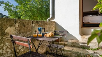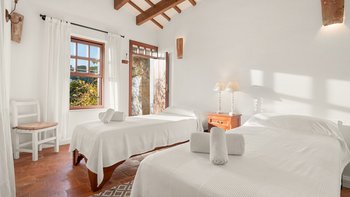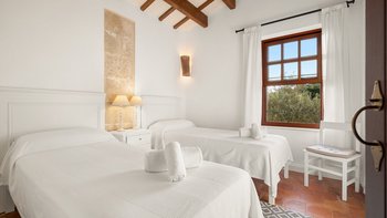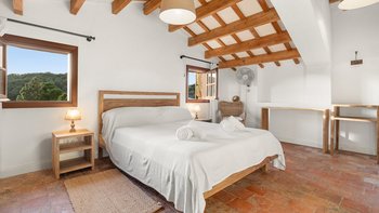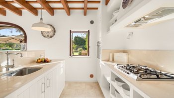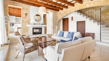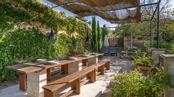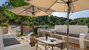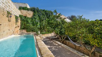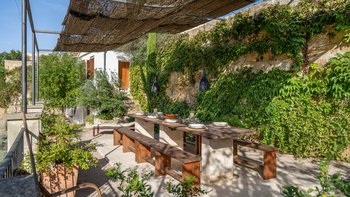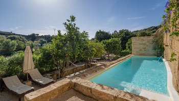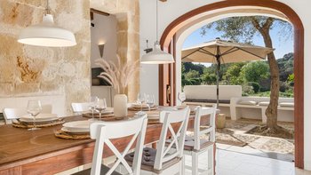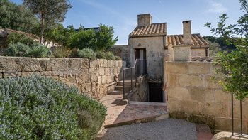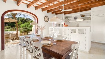 Im Außenbereich blicken gepolsterte Sitzgelegenheiten und eine schattige Terrasse mit Speiseraum über das 2 Hektar große Gelände mit Boule, Badminton und Barbecue, Blumensträngen, die große Rasenflächen und verzierte Steinmauern säumen, und Liegestühlen am einzigartigen Pool, der aus einem alten steinernen Wassertank errichtet wurde. 600 m oder 7 – 10 Minuten zu Fuß von Villa Jardi entfernt befindet sich die kleine Stadt Alaior, vielleicht die authentischste Stadt der Insel mit einer guten Auswahl an Restaurants und anderen Annehmlichkeiten in ihren engen verwinkelten Gassen; und für eine Abwechslung der geschäftige Mahón und die Geschäfte, Restaurants und der Sandstrand von Son Bou sind beide etwa 10 km vom Haus entfernt.