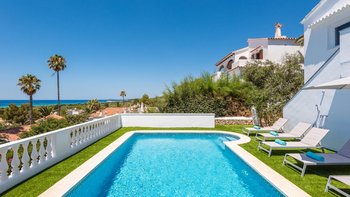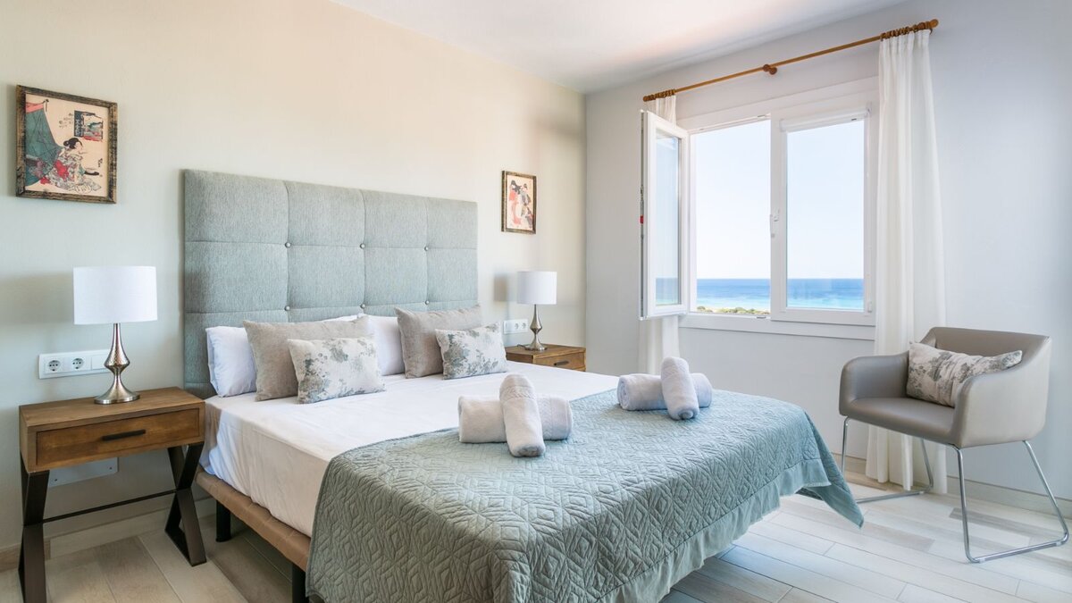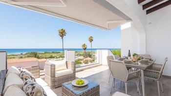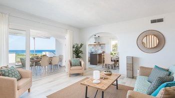Eine raffinierte Küstenvilla mit modernem Komfort, freiem Meerblick und mühelosem Zugang zum goldenen Sandstrand von Son Bou.