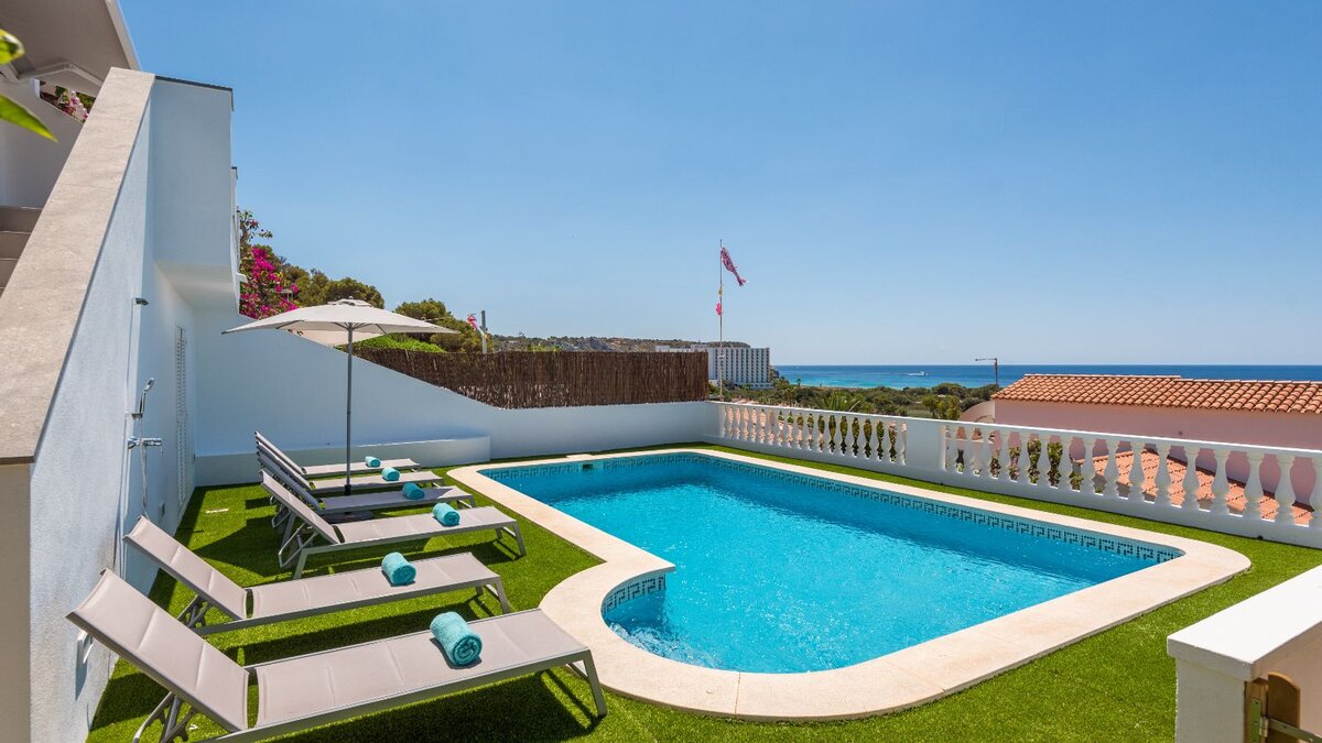 Die Villa Marnes ist eine wunderschön renovierte Doppelhaushälfte mit raffiniertem Komfort, modernem Design und weitem Blick auf das Mittelmeer. Sie erstreckt sich über zwei Ebenen und nur 500 Meter vom atemberaubenden Strand von Son Bou entfernt. Es bietet einen eleganten Rückzugsort in einer der privilegiertesten Lagen der Gegend.