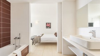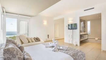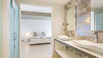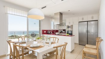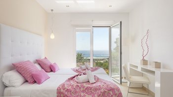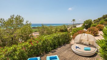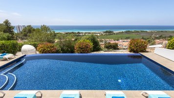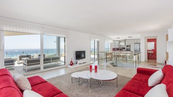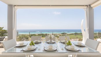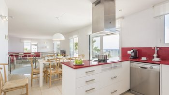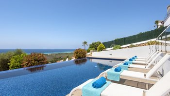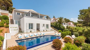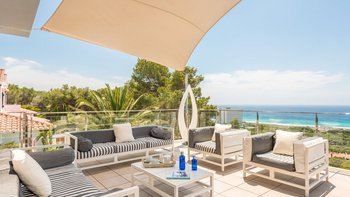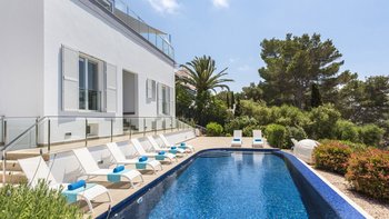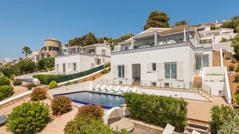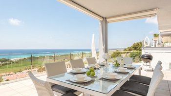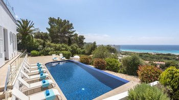 Die Villa Prestige ist eine helle und moderne Unterkunft für große Gruppen im sonnigen Menorca und bietet einen unglaublichen Weitblick über den Strand Son Bou.