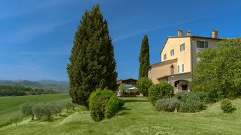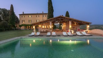 Das exquisit gestaltete Interieur wird durch ein wunderschönes weitläufiges Grundstück ergänzt. Der große PRIVATER POOL wird von einem Poolhaus begleitet, das mit einer Sauna und einem gut ausgestatteten Fitnessraum und einer Außenküche gestaltet ist. Der Sonnendeck und der Portikus bieten weitläufige Bereiche zum Entspannen in der Sonne oder im Schatten. Der Loungebereich mit Blick auf den Pool bietet weitläufige Sitzgelegenheiten mit herrlichem Panoramablick auf Todi und einen Kamin. Dessen Highlight ist nach Sonnenuntergang, wenn das goldene Licht die Zypressen und Olivenbäume betont. Des Anwesen umfasst auch eine private Kapelle auf dem Grundstück.
