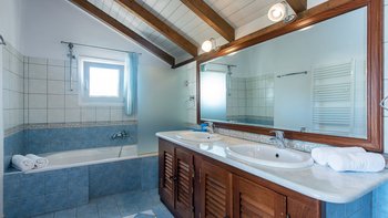 Ganz im Einklang mit dem entspannten Tempo der Insel, vereint diese geräumige Villa moderne Einrichtungen mit einer angenehmen Mischung aus modernen und traditionellen Möbeln. Fahnensteinböden, kreideweißes Dekor und erdfarbene Möbel erstrecken sich über das gesamte Erdgeschoss, wo eine offene Küche/Esszimmer Türen zum gestaffelten Garten hat; ein geräumiges Wohnzimmer mit Kamin und Großbild-Sat-TV, das sich auf eine überdachte Terrasse öffnet; und es gibt ein Zweibettzimmer mit eigenem Bad mit Dusche. Denen anderen drei Schlafzimmern teilen sich die obere Etage mit polierten Holzfußböden, Fachwerkdecken und Zugang zu einem Balkon. Und es ist in allen vier Gästezimmern und im Wohnzimmer eine Klimaanlage installiert. Für das Leben im Freien sorgen möblierte Veranden zum Essen im Freien und Entspannen, ein eingebauter Grill für das Mittagessen in der Sonne, Liegestühle am privaten Pool der Villa und Blick von den Balkonen im Obergeschoss über ein Meer aus silbernen Olivenbäumen bis hin zum Blau der dahinter liegenden Bucht. Iviscus ist auch gut für Urlaubsnotwendigkeiten positioniert, etwa 400 M vom Yanna Beach und 200 m von Gaios entfernt, wo sich die Restaurants rund um den Hauptplatz in bester Lage befinden, um Leute zu beobachten und Jachten zu entdecken.