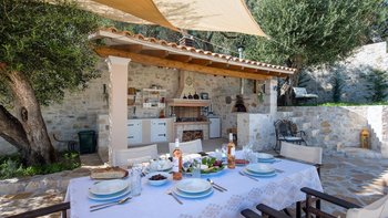Im Außenbereich gibt es einen neu erbauten Swimmingpool und einen Außenbereich mit eingebautem Grill und Pizzaofen, während weitere Sitzbereiche im gesamten Gebäude verstreut sind. Deren Stadt Magazia ist nur 8-10 Minuten zu Fuß von der Villa entfernt, wo Sie Annehmlichkeiten wie ein Geschäft, eine Taverne und eine Apotheke finden. Wenn Sie Lust auf einen Ausflug zum Strand haben, ist die Kaki Lagkada nur eine kurze Autofahrt entfernt.