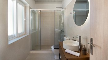 Im Inneren der Villa Alexa präsentiert sich eine durchdachte Mischung aus modernem Design und Komfort. Deren offene Wohnbereich mit stilvollen Möbeln und großen Fenstern, die den Raum mit natürlichem Licht durchfluten, bildet das Herzstück des Hauses. Eine voll ausgestattete Küche ermöglicht es den Gästen, köstliche hausgemachte Mahlzeiten nach eigenem Zeitplan zuzubereiten, während der angrenzende Essbereich der perfekte Ort ist, um diese in einer Gruppe zu genießen. Denen beiden Schlafzimmer sind durchdrungen von Komfort und Ruhe, und beide haben ein eigenes Bad. Ein separates drittes Badezimmer bietet ausreichend Platz für alle Gäste, um während ihres gesamten Aufenthalts in der Villa Alexa erfrischt und verjüngt zu bleiben.