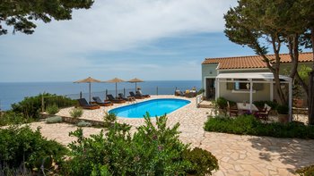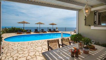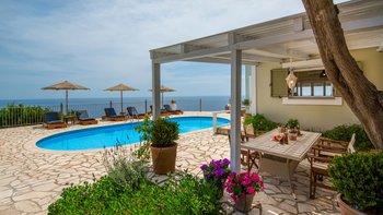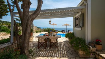 Villa Ava ist eine Villa mit drei Schlafzimmern an der ruhigen Südwestküste von Paxos, Griechenland, mit einer unglaublichen Lage, einer wunderschön eingerichteten Terrasse und erhöhtem Meerblick.