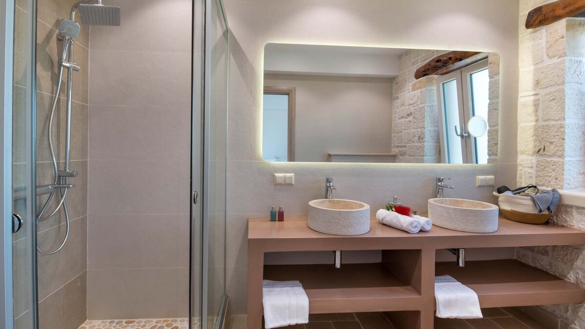 Im Inneren ist der offene Wohnbereich der Villa ein warmer und einladender Raum, in dem sich das Wohnzimmer, der Essbereich und die Küche nahtlos ineinanderfügen. Deren voll ausgestattete Küche ist wunderschön und mit hochwertigen Geräten ausgestattet, was sie zu einem Traumraum für die Zubereitung köstlicher Mahlzeiten macht. Deren angrenzende Essbereich ist perfekt, um Ihren kulinarischen Kreationen zu genießen, und an wärmeren Tagen bietet der frische Außenbereich einen schönen Ort, um Ihren Mahlzeiten umgeben von frischer Luft und natürlicher Schönheit zu genießen. Jedes der vier geräumigen Doppelschlafzimmer ist geschmackvoll eingerichtet. Drei der vier Schlafzimmer verfügen über ein eigenes Bad und ein separates Bad, in dem alle Gäste auf ihre individuellen Bedürfnisse eingehen können. Das Design der Villa sorgt für eine helle und luftige Atmosphäre und verbindet sich nahtlos mit der Natur.