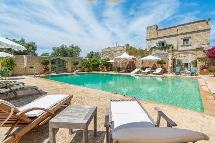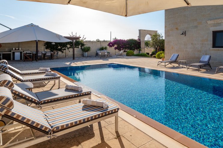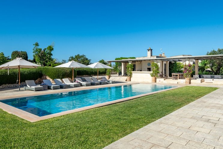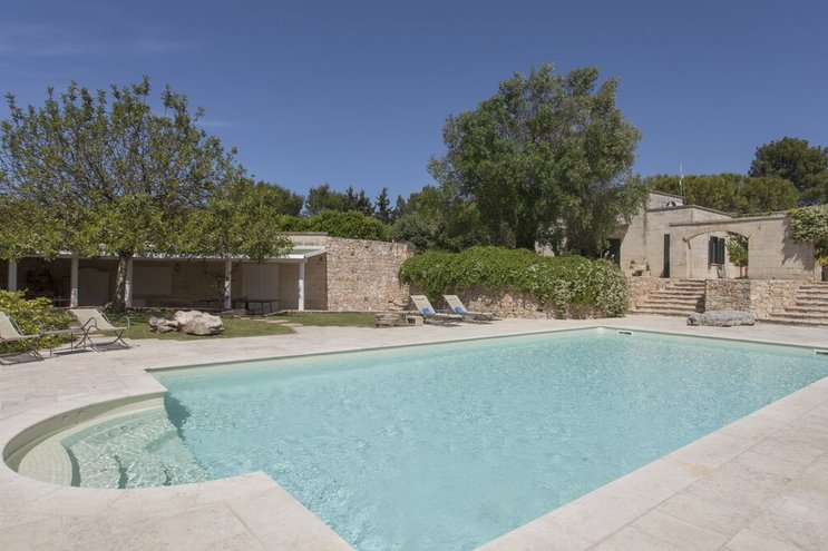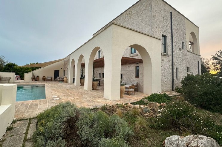 Diese stilvolle Villa ist ein ruhiger Rückzugsort aus dem 18. Jahrhundert im Herzen Apuliens und verfügt über fünf Schlafzimmer mit eigenem Bad, einen Salzwasserpool, Panoramaterrassen und eine Außenküche.