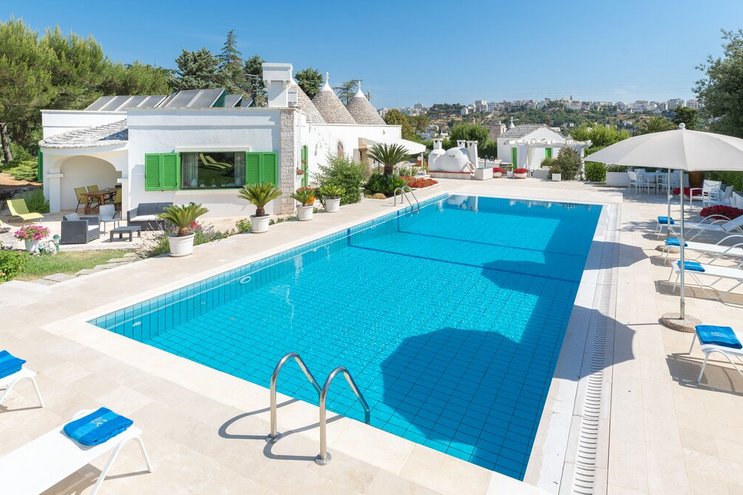 In einem Trulli-Gebäude mit mehreren Kegeln, das mit Qualität und Stil restauriert wurde, ist diese geräumige Villa in Apulien ein schicker Rückzugsort inmitten der zeitlosen Landschaft mit einem ausgezeichneten Poolbereich zum gemütlichen Leerlaufen.