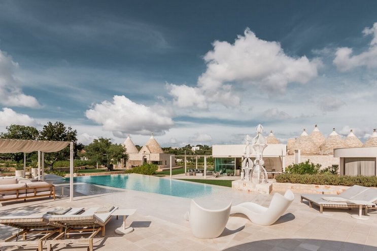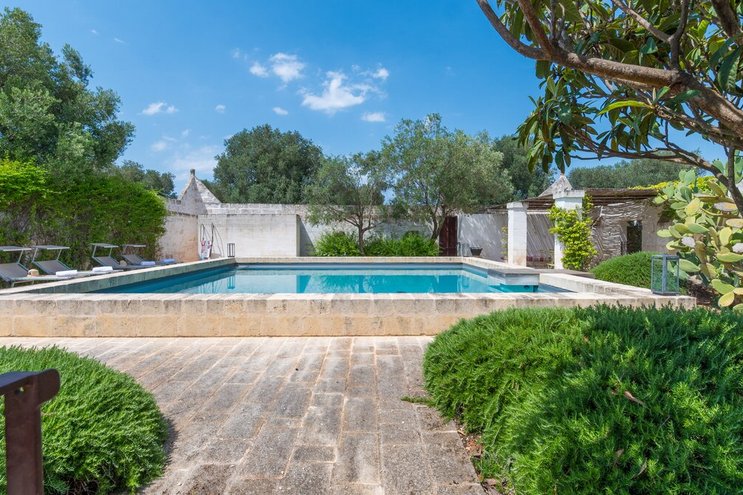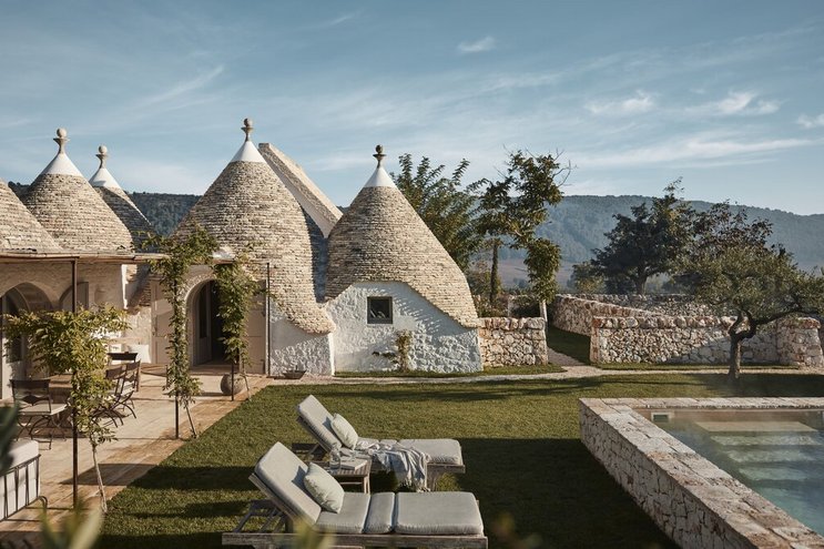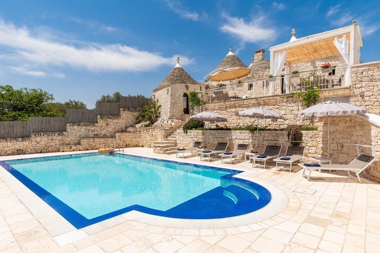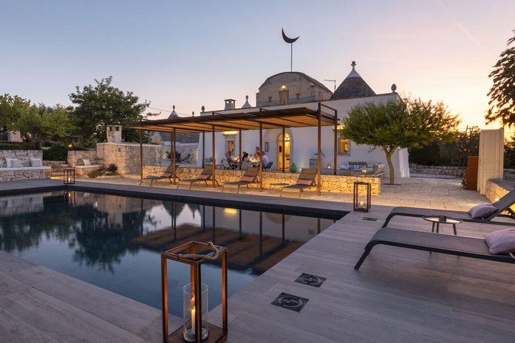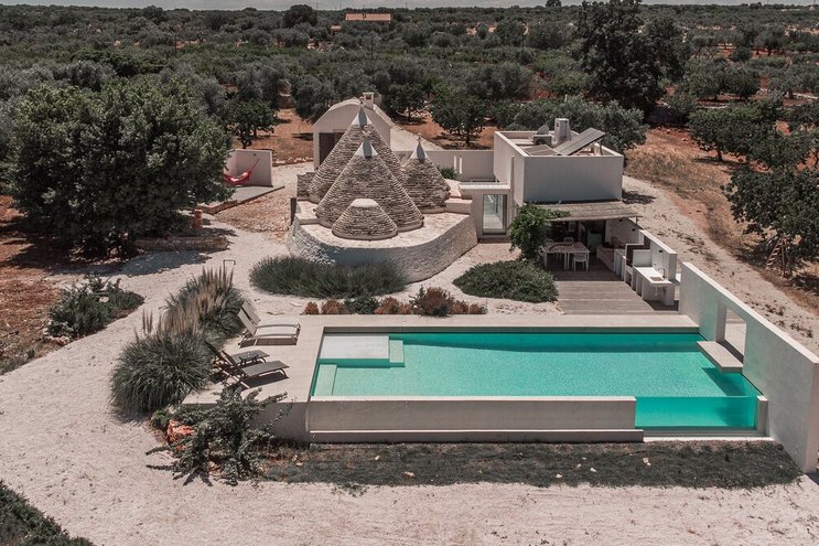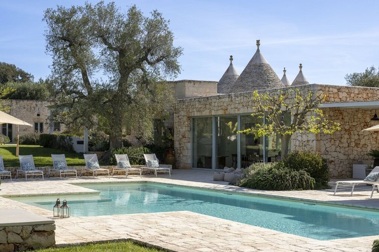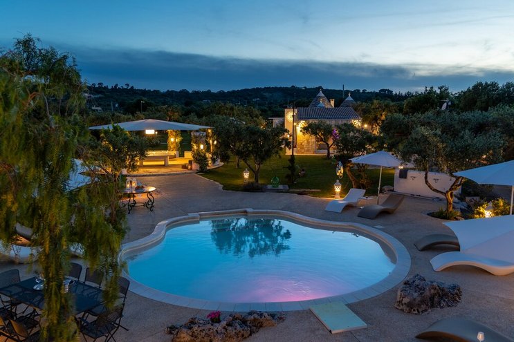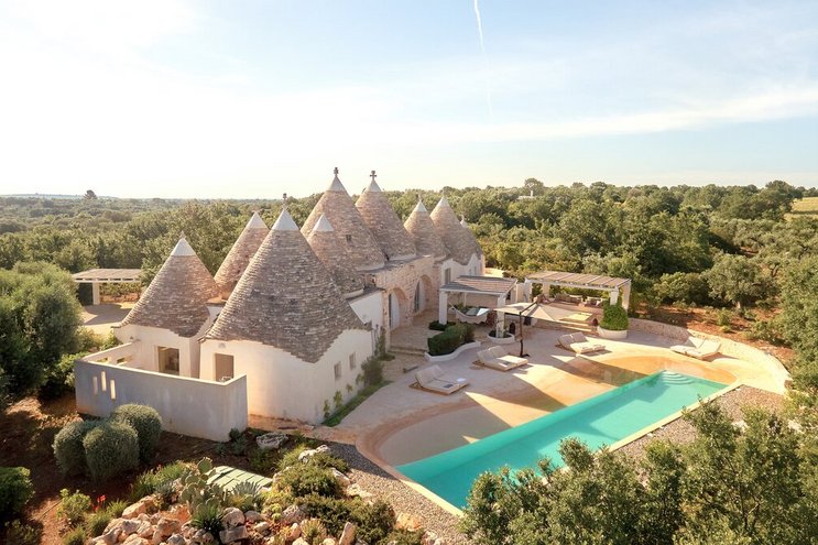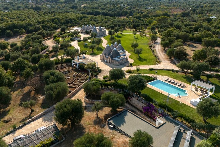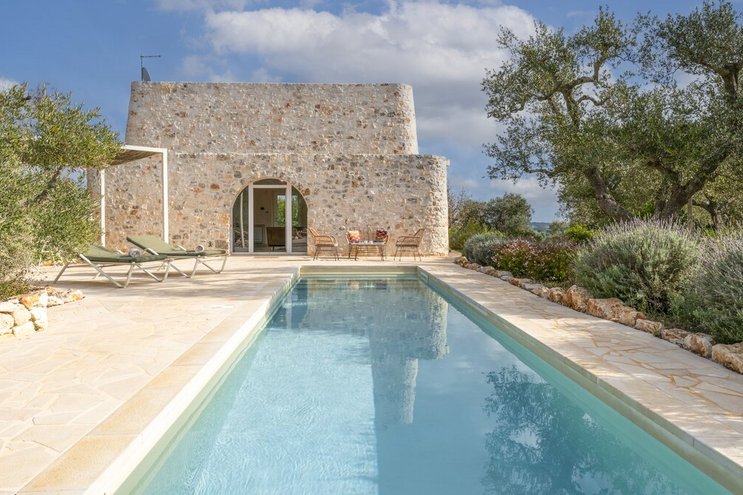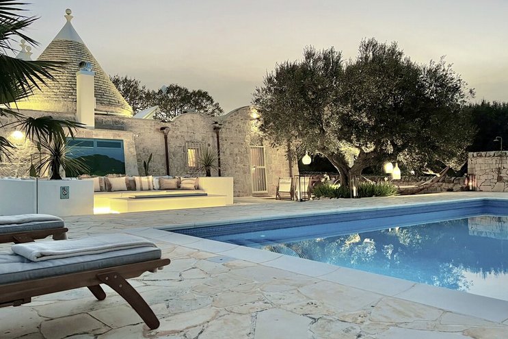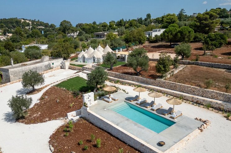 Dieses private Luxusresort mit maßgefertigten Möbeln innen und außen ist nur eine kurze Autofahrt von ausgezeichneten Restaurants im malerischen Cisternino und Ostuni entfernt. Eine der herausragendsten Trulli-Immobilien, die wir je gesehen haben.