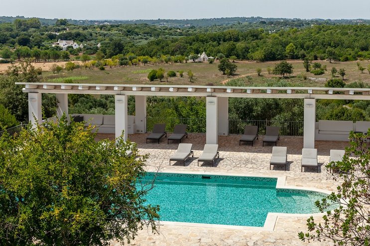 Mit Blick auf die Felder und Kirschgärten eines privaten Anwesens in den Hügeln des Valle d’Itria ist diese Familienvilla in Apulien ein komfortabler, charaktervoller, ländlicher Rückzugsort mit hohen Standards und einem riesigen Pool.