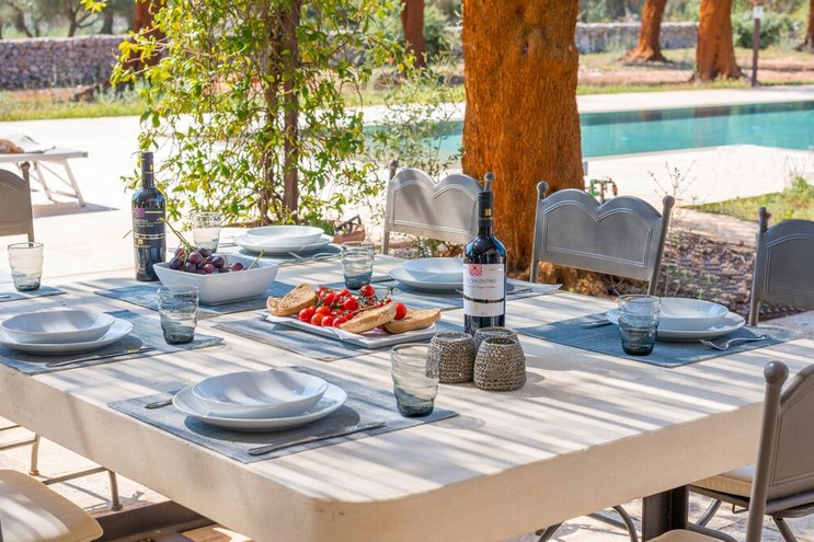 Mit ihren Steinmauern, kegelförmigen Dächern und sorgfältig restaurierten Innenräumen bietet die Villa einen authentischen Geschmack Apuliens und bietet gleichzeitig alle Annehmlichkeiten, die Sie für einen entspannten, stilvollen Aufenthalt benötigen.