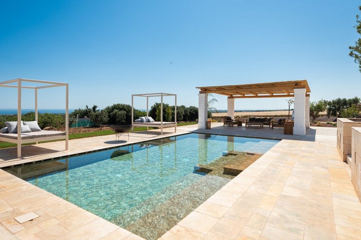 Set among five acres of land and furnished with stylish décor, Villa Montemare is a modern and spacious retreat with lovely sea views in Puglia and within easy reach of both picturesque Polignano a Mare and Monopoli.