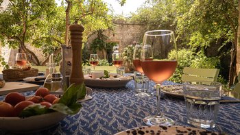 Im Erdgeschoss der Villa, durch den Eingang, wo zeitgenössische Kunst von David Tremletts ausgestellt wird, werden die Gäste durch den Essbereich und die Treppe, die zu einem Mezzanin-Arbeitsbereich führt, willkommen geheißen. Weiters gibt es eine Küche im traditionellen und rustikalen Stil und einen großen Wohnbereich mit komfortablen Möbeln, einem offenen Kamin und französischen Türen, die zum Innenhof führen. Zwei Doppelschlafzimmer mit Kingsize-Bett befinden sich ebenfalls auf dieser Etage; mit Dusche en Suites und direktem Zugang zum Außenbereich.