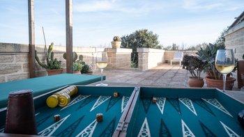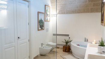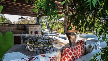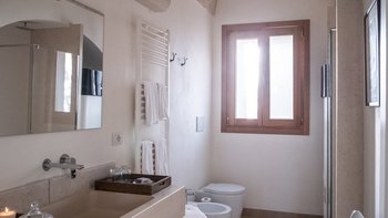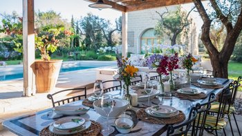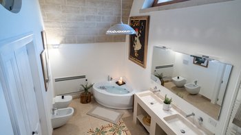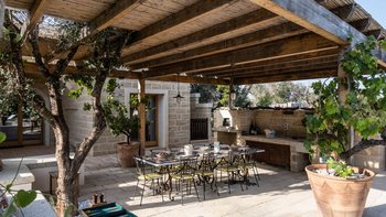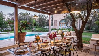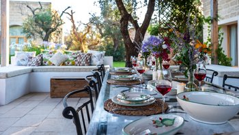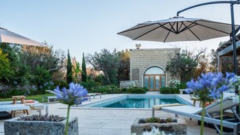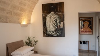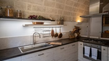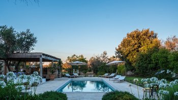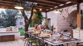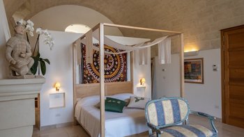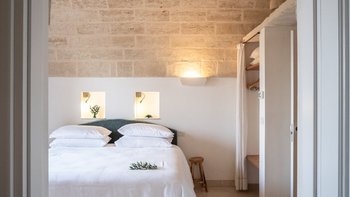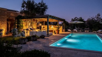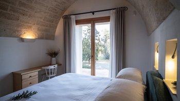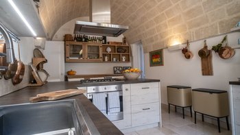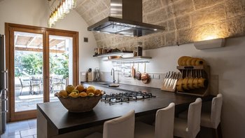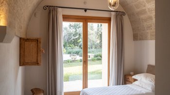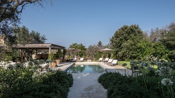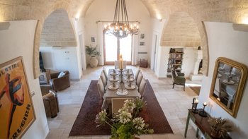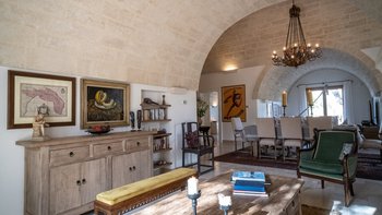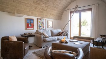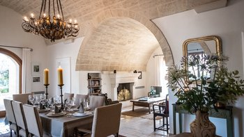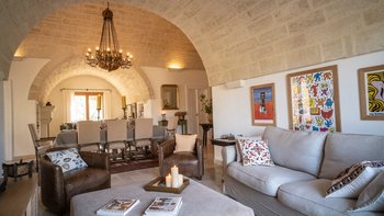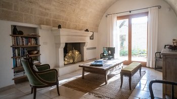 Für eine wirklich entspannende Zeit auf dem Land wäre eine geräumigere, elegante Villa schwer zu finden. Ein perfekter Rückzugsort von der belebten Küste, Masseria delle Perle verfügt über weitläufige Gärten, Terrassen im Freien und einen Pool, in dem man richtig schwimmen kann, ergänzt durch Interieurs mit bequemen Sofas und einem großen offenen Kamin in der Bibliothek – cum Wohnzimmer. Dieser Villa ist ein ziemlich erwachsenes Erstattung eine sehr moderne Inneneinrichtung unter den Gewölbedecken geschaffen.