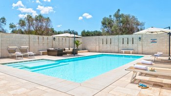 Masseria Eterea ist eine wunderschöne, traditionell gestaltete Villa mit einem modernen und zeitgemäßen Interieur, einer sehr gut ausgestatteten Küche, einem beheizbaren Pool mit Strandbereich und einem Wohnbereich im Freien. Des Haus liegt im nördlichen Teil der Region Salento, in einer ländlichen Umgebung, inmitten von 6 Hektar Olivenhainen, zwischen Ostuni, San Michele Salentino, Carovigno, San Vito Dei Normanni und Ceglie Messapica, alle diese Städte sind leicht zu erreichen und gelten als einige der besten Restaurants und Speisen in Apulien. Etwa 20 Minuten von den Sandstränden von Torre Santa Sabina, Specchiolla und dem bekannten Naturschutzgebiet und den schönen und wunderschönen Stränden von Torre Guaceto entfernt. Die Lage bietet eine Vielfalt, die nur wenige mithalten können, kulinarische Genüsse, historische Erkundungen oder einfach nur der Wunsch nach einer Auszeit von allem, dies ist ein wunderbarer friedlicher Ort zum Entspannen und Erholen.