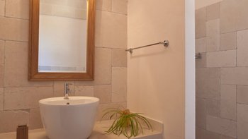 Es gibt eine ca. 1 km unebene Straße zur Villa.