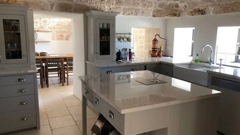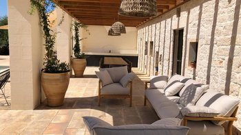 Die Villa befindet sich auf einem abgelegenen 2 Hektar großen Grundstück und bietet Platz für bis zu 10 Gäste in fünf wunderschön eingerichteten Schlafzimmern mit eigenem Bad, jeweils mit Klimaanlage und Blick auf die ruhige Landschaft. Des Erdgeschoss verfügt über einen offenen Wohn- und Essbereich mit traditionellen Gewölbedecken und Kamin, eine moderne, sehr gut ausgestattete Küche und drei Schlafzimmer. Im Obergeschoss befinden sich zwei elegante Master-Suiten, die auf weitläufige Terrassen führen, ideal für Yoga bei Sonnenaufgang, Meditation oder abendliche Drinks mit Panoramablick.
