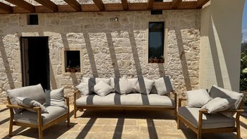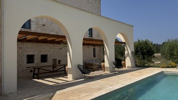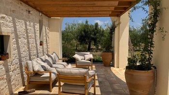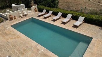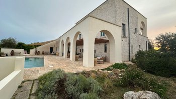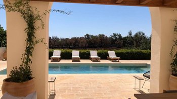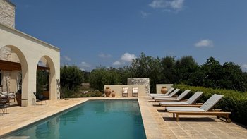Diese stilvolle Villa ist ein ruhiger Rückzugsort aus dem 18. Jahrhundert im Herzen Apuliens und verfügt über fünf Schlafzimmer mit eigenem Bad, einen Salzwasserpool, Panoramaterrassen und eine Außenküche.