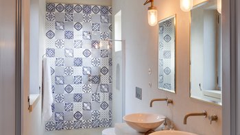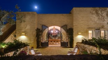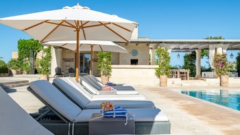 Die Masseria Pino Marittimo mit ihren Gewölbedecken, exquisiten Bögen und freiliegenden Steinmauern deutet auf den ersten Blick darauf hin, dass es sich um ein makellos restauriertes Bauernhaus handelt. Deren Masseria Pino Marittimo wurde 2014 erbaut, um die Schönheit Apuliens architektonischer Traditionen zur Schau zu stellen. Deren Eigentümer beauftragten OKA mit der Inneneinrichtung und der Villa und verfügen über maßgeschneiderte Handwerkskunst, die durch moderne Annehmlichkeiten wie ein Kühlsystem in jedem Zimmer und eine voll und ganz ausgestattete, moderne Küche ergänzt wird. Deren Villa mit Blick auf kilometerlange offene Landschaften liegt in einem gepflegten Garten mit Rasenflächen mit Zitronen- und Orangenbäumen, in einem ruhigen Olivenhain, etwas außerhalb des Dorfes Serrano. Im Haupthaus gibt es drei Schlafzimmer, ein luftiges Esszimmer mit kunstvollem Kronleuchter und langem Refektoriumstisch und ein kühles Wohnzimmer, dessen schlichter Stil perfekt für den aufwendig gefliesten Boden ist. Drei weitere Zimmer im Nebengebäude verfügen über ein Stockbettzimmer, ideal für Kinder. Und der Poolbereich mit Gartenrasen ist der Mittelpunkt für das Leben im Freien, komplett mit Esspavillon mit angrenzendem Sitzbereich, Sommerküche und Kinderspielzeug.