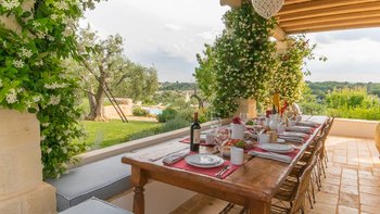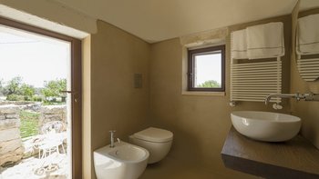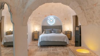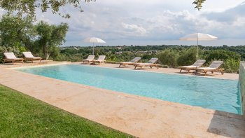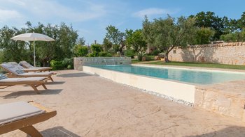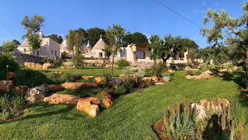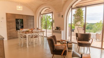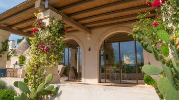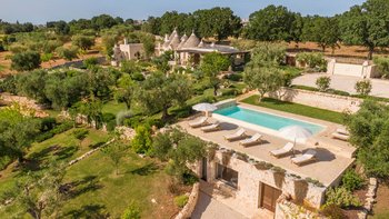 Canta Tra I Trulli ist ein stilvolles und luftiges Trullo-Anwesen, das sowohl stilvoll und auch geschmackvoll einfach ist. Deren Villa verfügt über einen OFFENER GRUNDRISS Wohn- und Essbereich mit einer maßgeschneiderten, voll ausgestatteten Küche, mit großen bogenförmigen Glastüren, die auf die möblierte Loggia blicken. Zu den weiteren Annehmlichkeiten im Freien gehören ein großer Pizzaofen, ein Bereich, der als Bar genutzt wird und ein kreisförmiger gepflasterter Bereich mit Feuerstelle und neuen weichen Sitzgelegenheiten. Deren Villa verfügt über vier sehr gut ausgestattete Schlafzimmer, jedes komplett mit modernen Duschbädern und viel Naturlicht. Draußen haben die Gäste die weitläufigen und gepflegten Gärten mit Bäumen, Sträuchern, Pflanzen und verwinkelten Wegen und sehr genossen. Der große, Privater Pool ist perfekt sonnenverwöhnt, mit herrlich weitreichendem Blick auf die apulische Landschaft.