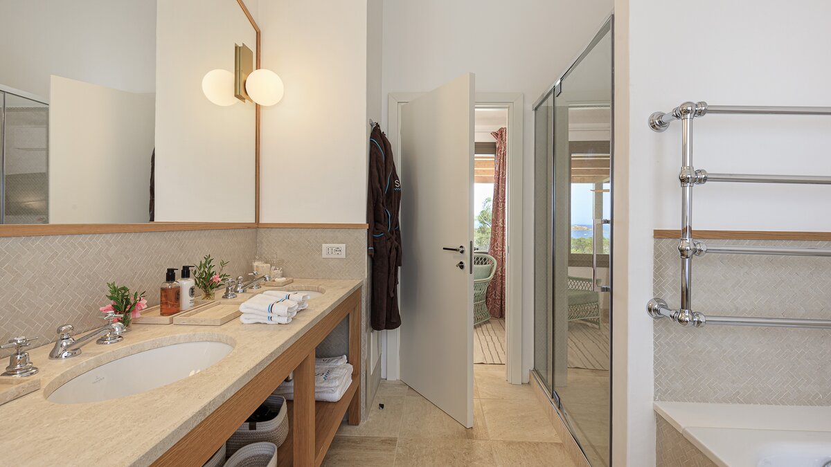 Mit seinem raffinierten Dekor, natürlichen Materialien und sanften neutralen Farbtönen schafft die Villa Sabbia ein einladendes und entspannendes Ambiente im gesamten Gebäude. Deren Kombination aus mühelosem Luxus und einer erstklassigen Küstenlage macht es zu einer Oase auf Sardinien, wo jedes Detail für Komfort, Ruhe und unvergessliche Erinnerungen entworfen wurde.