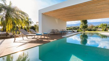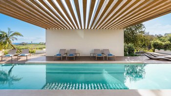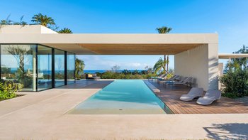 Im Außenbereich bildet der spektakuläre Infinity-Pool den Mittelpunkt der Villa, der mit dem Horizont zu verschmelzen scheint, mit Blick auf Zitrushaine und das glitzernde Ionische Meer. Eine Reihe von einladenden Terrassen bieten viel Platz für Mahlzeiten im Freien und ruhige Momente, umrahmt von farbenfrohen Gärten.