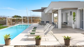 Die Außenbereiche sind das wahre Highlight der Villa Pomelia. Im Mittelpunkt steht ein eleganter Swimmingpool, umgeben von einer Sonnenterrasse mit Liegestühlen für entspannte Nachmittage unter der mediterranen Sonne. Der überdachte Loungebereich ist ideal, um bei einem Buch oder einem Aperitivo zu entspannen und dabei den Pool und das Haupthaus zu überblicken. Nur 3 km entfernt bietet Marzamemi charmante Restaurants und Geschäfte, während das nahegelegene Noto (20 km) zur Erkundung seiner barocken Schönheit einlädt. Mit Sand- und Felsstränden, die nur 350 m von der Villa entfernt liegen, und Sehenswürdigkeiten wie Siracusa sind leicht zu erreichen, verbindet die Villa Pomelia modernen Komfort mit einer unschlagbaren Lage, um Siziliens Küstenschätze zu entdecken.