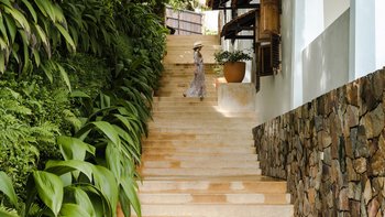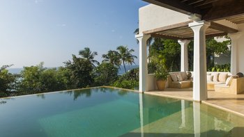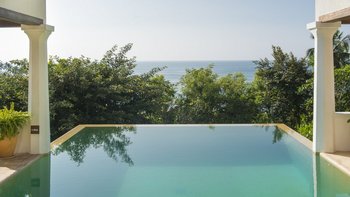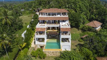 Auf einem ruhigen Hügel an der Südküste Sri Lankas gelegen, ist Chalcedony eine geräumige Villa mit fünf Schlafzimmern und Blick auf den Indischen Ozean inmitten eines ruhigen Meeres mit üppigem Grün.