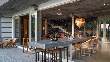 Tamarind Sands ist eine schicke, moderne und ultra-komfortable Villa an der Südküste Sri Lankas. Perfekt am östlichen Rand einer wunderschönen Sandbucht gelegen, haben die Gäste direkten Zugang zum weichen, goldenen Sandstrand darunter, während die Aussicht auf Sonnenaufgang und Sonnenuntergang von der Villa einfach spektakulär ist. Folgen Sie dem Soundtrack des Ozeans durch den Flur, vorbei an der Küche, in der der qualifizierte Koch und sein Team alle Mahlzeiten mit Zutaten von lokalen Bauern und Märkten zubereitenund einschließlich köstlicher Obstplatten und Picknicks am Strand, wenn Sie möchten – und in den offenen Grundriss Wohnbereich. Dieser ist mit superweichen Sitzgelegenheiten für Entspannung im Innenbereich und einem langen Esstisch ausgestattet, der sich auf die Terrasse mit Blick auf den atemberaubenden Indischen Ozean erstreckt. Dessen malerische Terrasse ist mit eleganten Holzliegen und Sonnenschirmen ausgestattet und befindet sich neben dem einladenden Infinity-Pool (mit Kinderbereich), wo Sie die Aussicht über den tropischen Garten genießen können.