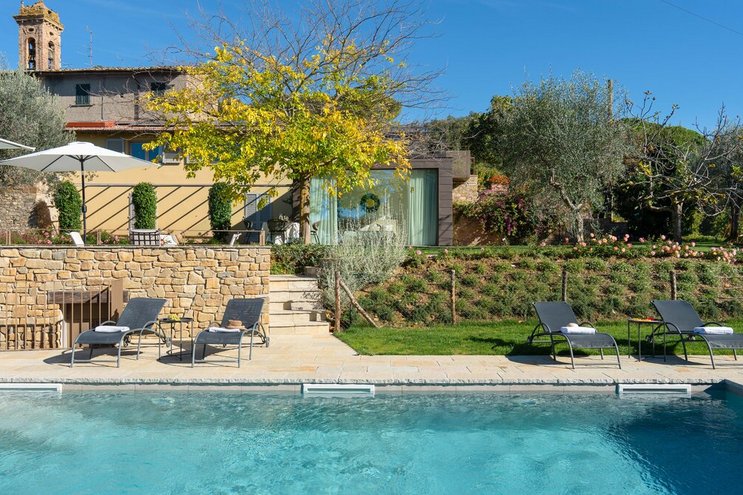 Casa del Giglio is a refined country villa that combines contemporary style with authentic Tuscan charm. With a private pool and sweeping countryside views, it is an inviting retreat for both relaxation and exploration.