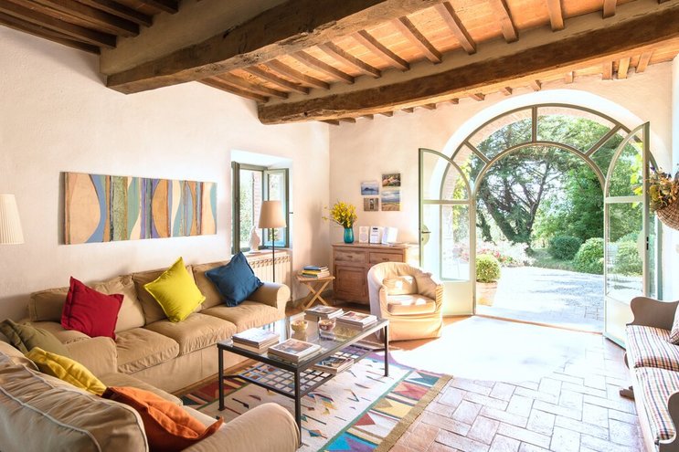Ein altes Bauernhaus, wunderschön restauriert, ist Casa di Sopra heute eine fabelhafte Familienvilla in der Toskana, die von den künstlerischen Eigentümern sorgfältig entworfen wurde, um moderne Einrichtungen mit der Eleganz des Landhauses zu verbinden.