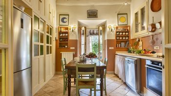 La Casa della Chiesa befindet sich in ländlicher Ruhe, weniger als 20 km vom lebhaften Viareggio und seinen Sandstränden entfernt; noch näher an der historischen Stadt Camaiore und den eleganten Piazzas von Lucca; und nur einen kurzen Tagesausflug von Pisa und Florenz entfernt. Und die Villa selbst bietet jede Menge Auswahl und Platz für die Gäste, um sich zu Hause zu unterhalten, von gut sortierten Bücherregalen, Tischspielen, Smart-TVs und WiFi bis hin zu Outdoor-Einrichtungen wie Krocket, Tischtennis und großem Swimmingpool, der in sonnigen Rasenflächen versunken ist. Dieser fröhliche Haus besticht durch die entspannte Atmosphäre von Freunden und verfügt über Holzbalkendecken, Backsteinfliesen, große offene Kamine und helle Teppiche und Stoffe und. Hübsche Zimmer im Landhausstil verfügen über ein klimatisiertes Schlafzimmer im Dachgeschoss und ein Himmelbett mit Überdachung. Deren Küche im Landhausstil verfügt über moderne Geräte und eine Tür zur möblierten Veranda. Eine weitere mit Glyzinien überdachte Veranda befindet sich in der Nähe des Eingangs. Deren geselliger Gesellschaftsraum umfasst einen traditionellen Speisesaal, eine Bibliothek/TV-Raum voller eklektischer bekannter Kunstwerke und ein Wohnzimmer auf Split Ebene, das mit rustikaler Ungezwungenheit eingerichtet ist und von einem Mezzanin-Arbeitsbereich überblickt wird. Denen Rasenflächen fallen sanft zum Pool ab und führen auf die Rasenfläche, die für Fußball genutzt wird. Denen Gärten sind sehr schön mit Rosen, Iris und Lavendel. Denen Bäder wurden kürzlich renoviert.