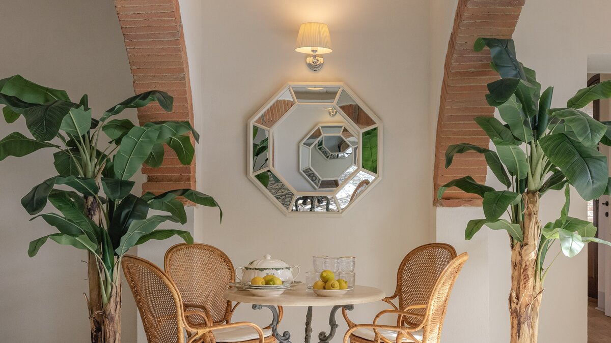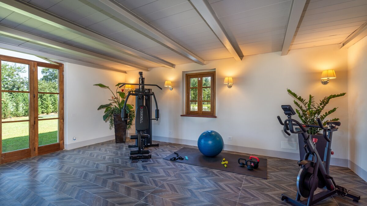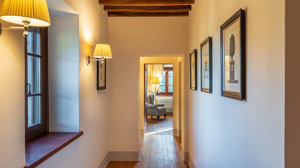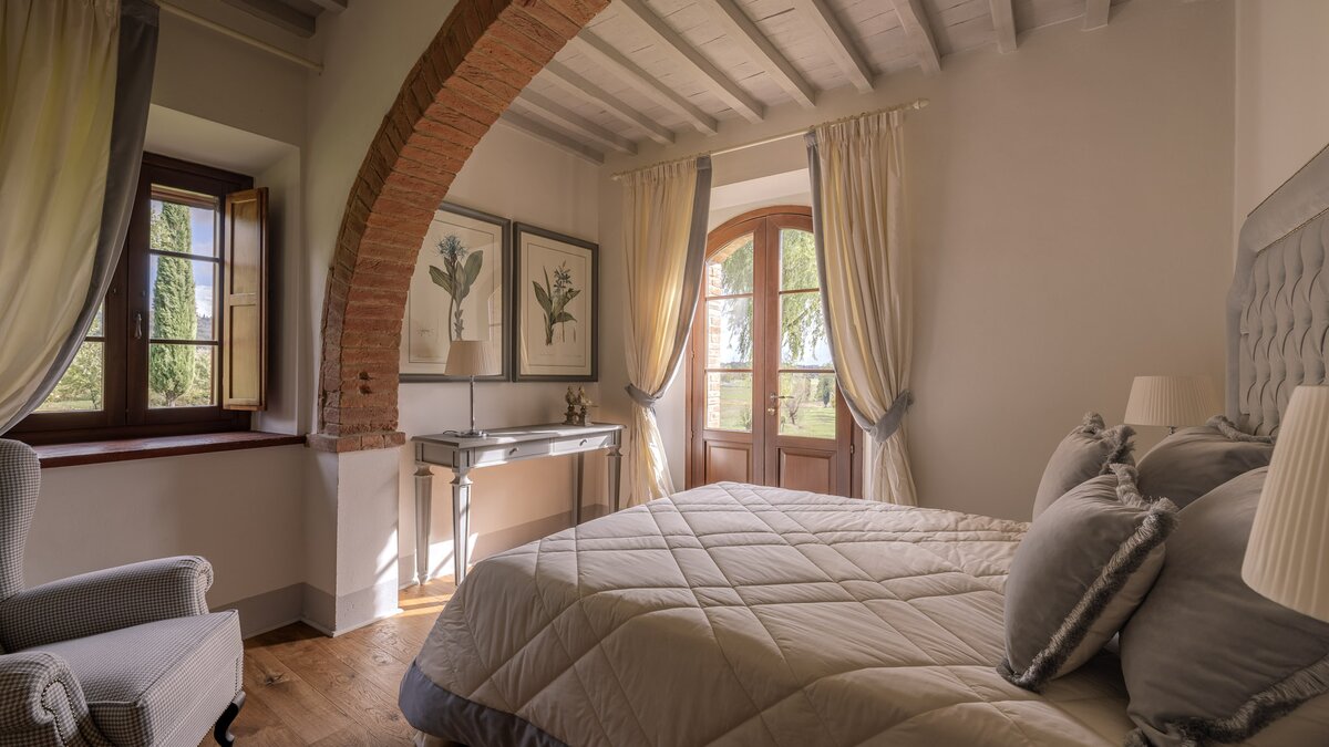 Im Inneren strahlt die Podere Lucilla Wärme und Eleganz aus. Denen acht individuell gestalteten Schlafzimmer, jedes voll klimatisiert, bieten den Gästen einen komfortablen Rückzugsort. Mit einem gemütlichen Wohnzimmer und einer voll ausgestatteten Küche, perfekt für kulinarische Enthusiasten, ist diese Villa der ideale Ort, um Kontakte mit Ihren Liebsten zu knüpfen. Ein spezieller Arbeitsbereich bietet Platz, um sich zu konzentrieren, während der Fitnessbereich mit Cardiogeräten und Terrakotta-Fliesen mit raffinierten, modernen Elementen und schaffen einen idyllischen Rückzugsort für die Gäste.