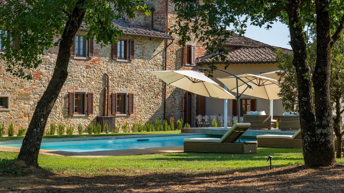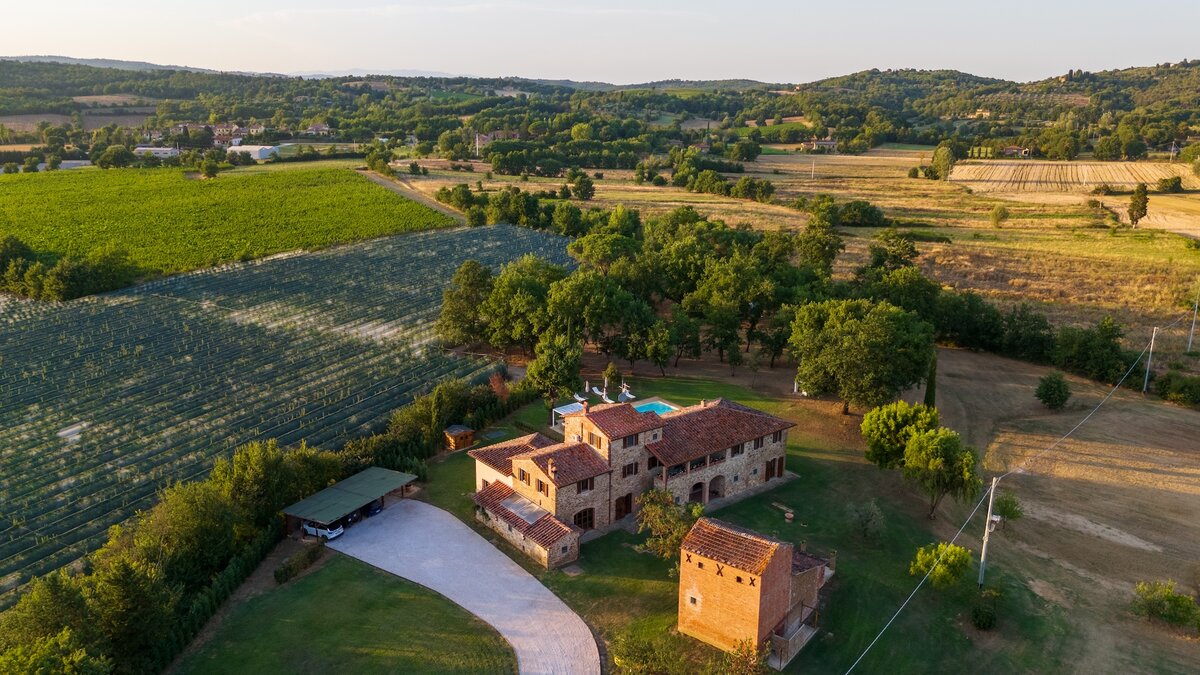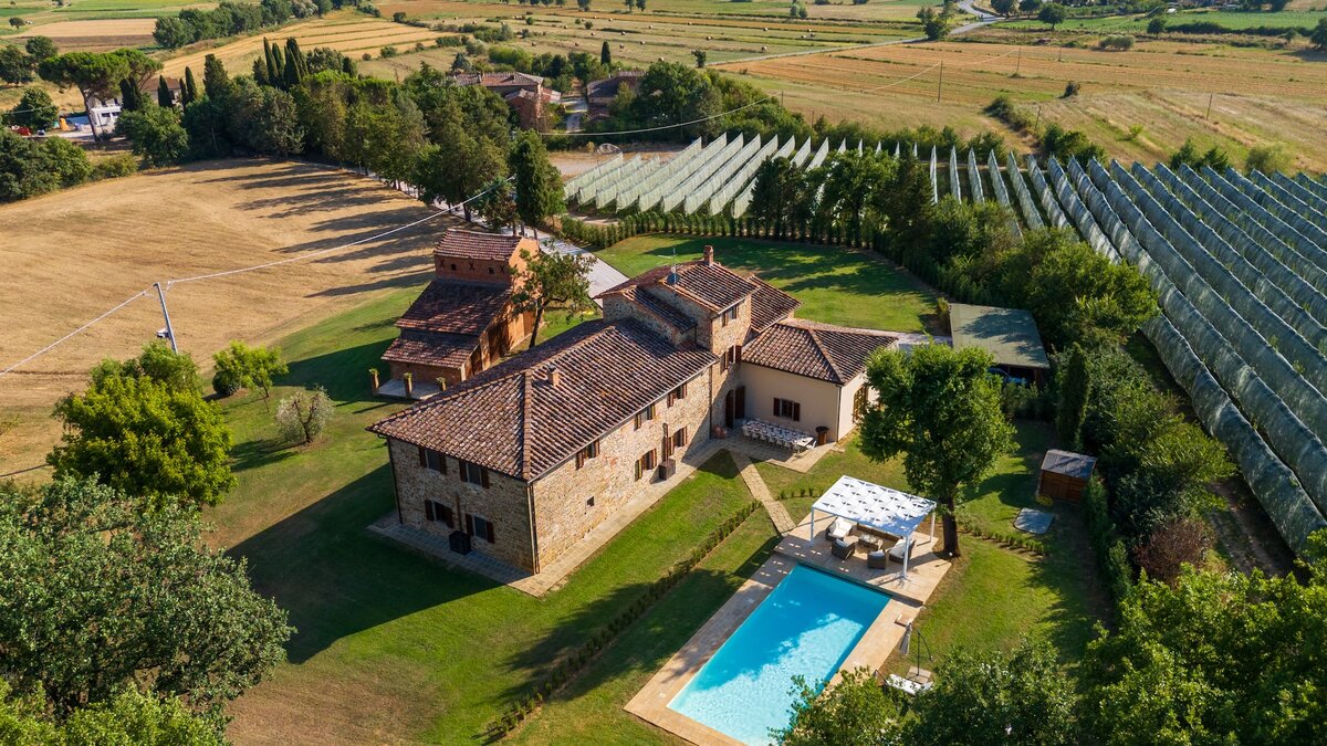 Podere Lucilla, eingebettet in die malerische Landschaft der Toskana, ist ein exquisites Anwesen mit acht Schlafzimmern, das historischen Charme nahtlos mit modernem Komfort verbindet. Dieses sorgfältig restaurierte Anwesen ist ein idealer Rückzugsort für große Familien oder Gruppen von Freunden, die das authentische italienische Leben erleben möchten. Umgeben von sanften Hügeln, alten Olivenhainen und üppigen Weinbergen, bietet das Podere Lucilla einen ruhigen Rückzugsort, während die kulturellen Schätze der Region leicht zu erreichen sind. Zu den herausragenden Merkmalen der Villa gehören ein glitzernder Pool, weitläufige Gärten und ein kleiner privater See, alle vor der Kulisse der zeitlosen Landschaft der Toskana.