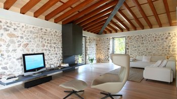 Zu den luxuriösen Einrichtungen gehören Plasma-Fernseher, Kinoleinwand und Laptop-Computer, während die Liebe zum Detail in der Küche betont wird, die mit einem Temperaturregler für Wein ausgestattet ist. Draußen gibt es wunderschöne Terrassen, auf denen jeder seine Mahlzeiten im Sternenlicht genießen kann, und es gibt auch viele kleinere Ecken, in denen man sich entspannen und ein Lieblingsbuch lesen kann. Der große Pool ist eine ständige Versuchung, eine willkommene Abwechslung von der warmen mallorquinischen Sonne zu bieten.