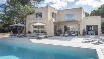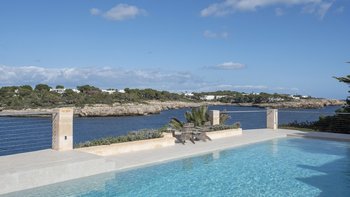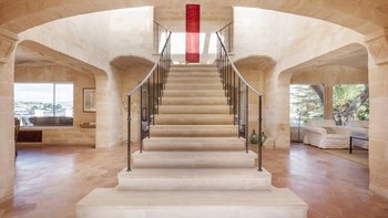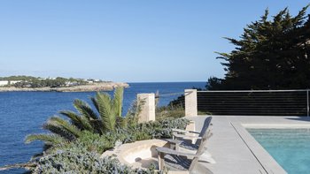 Eingebettet an der atemberaubenden Küste Mallorcas, ist diese exquisite Villa direkt am Meer ein Meisterwerk, das vom renommierten dänischen Architekten Jørn Utzon inspiriert wurde, der für seine ikonischen Entwürfe und die Auszeichnung mit dem Pritzker-Preis gefeiert wird. Deren Villa wurde vollständig aus den geschätzten Natursteinen der Insel wie den leuchtenden Stuten und dem Santanyi-Stein gefertigt und verbindet traditionellen mallorquinischen Charme mit zeitloser Eleganz. Deren weitläufige Fenster umrahmen einen fesselnden Blick auf die azurblaue Bucht, üppige, mit Zypressen und Bougainvillea geschmückte Gärten und die duftende mediterrane Flora. Mit ihren markanten geometrischen Formen, Gewölbedecken und architektonischen Details, die sie auszeichnen, ist diese Villa wirklich ein verstecktes Juwel. Mit Haupthaus, Gästehaus, privatem Garten, großem Pool, direktem Meerzugang und eigenem Steg bietet es einen unvergleichlichen Rückzugsort für diejenigen, die Schönheit und Ruhe suchen.