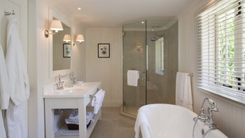 • Doppelzimmer mit Bad en suite (freistehende Badewanne) und separater Dusche