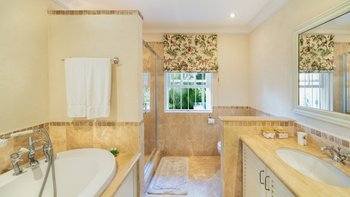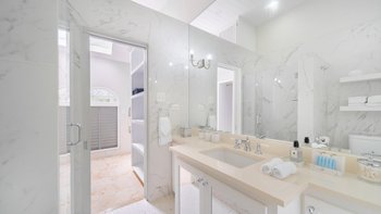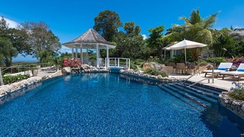 Wenn Sie nach draußen treten, werden die Gäste mit einem optischen Festmahl aus grünen Gärten und azurblauem Himmel verwöhnt. Zwei großzügige Swimmingpools laden zu erfrischenden Bädern ein, während ein privater Pavillon einen intimen Ort für ruhige Kontemplation oder intime Gespräche bietet. Dessen geräumige Terrasse ist mit Plüschliegen geschmückt, die ideal sind, um sich in der warmen karibischen Sonne zu sonnen. Außerhalb des Grundstücks der Villa haben die Gäste exklusiven Zugang zur Sandy Lane Property Owners Beach Facility, die mit kostenlosen Liegen, Sonnenschirmen und einer Bar mit Personal ausgestattet ist. Für diejenigen, die gerne erkunden möchten, ist die erstklassige Lage der Villa in Reichweite der Wunder von Barbados. Von der mystischen Animal Flower Cave in St. Lucy bis hin zu privaten Katamaran-Kreuzfahrten entlang der malerischen Küste warten die Schätze der Insel darauf, entdeckt zu werden. Das aufmerksame Concierge-Team der Villa organisiert alles ganz einfach.