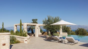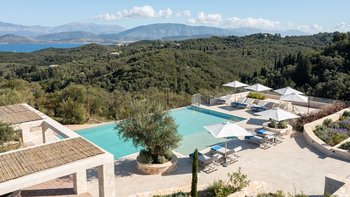 Die Villa Kassi liegt oberhalb der Avlaki-Bucht und vereint Platz, Privatsphäre und mühelosen Stil für einen entspannten Aufenthalt auf Korfu.