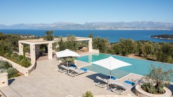 Die Villa Kassi liegt über dem blauen Wasser der Avlaki-Bucht und ist ein moderner Rückzugsort mit sechs Schlafzimmern für diejenigen, die Platz, Privatsphäre und jeglichen Komfort in der Nähe suchen. Seine erhöhte Lage bietet einen weiten Blick über die Straße von Korfu in Richtung Albanien und schafft eine friedliche Kulisse für langsame Morgenstunden, Nachmittage am Pool und entspannte Abende mit der Familie oder Freunden.