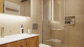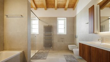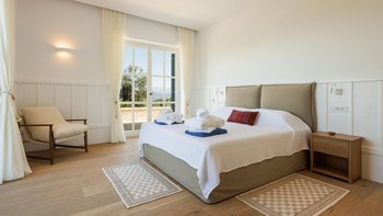 Im Inneren fühlt sich die Villa hell und mühelos an. Raumhohe Fenster lassen das Licht herein und rahmen das Meer ein, während eine weiche, natürliche Farbpalette den Blick auf die Landschaft draußen behält. Aller Schlafzimmer haben ein eigenes Bad und bieten Meerblick. Dessen Master-Suite verfügt über eine beeindruckende Badewanne und Dusche mit Blick auf die Küste. Durchdachte Details und glatte, offene Grundrisse verleihen dem Haus einen ruhigen, lockeren Ablauf.
