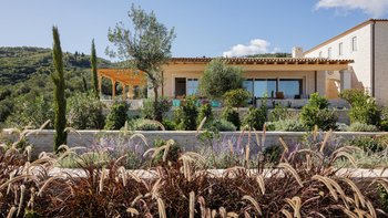 Im Freien umschließen angelegte Gärten einen Infinity-Pool, der sich zur Bucht hin öffnet. Schattige Terrassen, ruhige Sitzecken und ein großzügiger Essplatz mit Gasgrill laden zu langen Tagen im Freien ein.